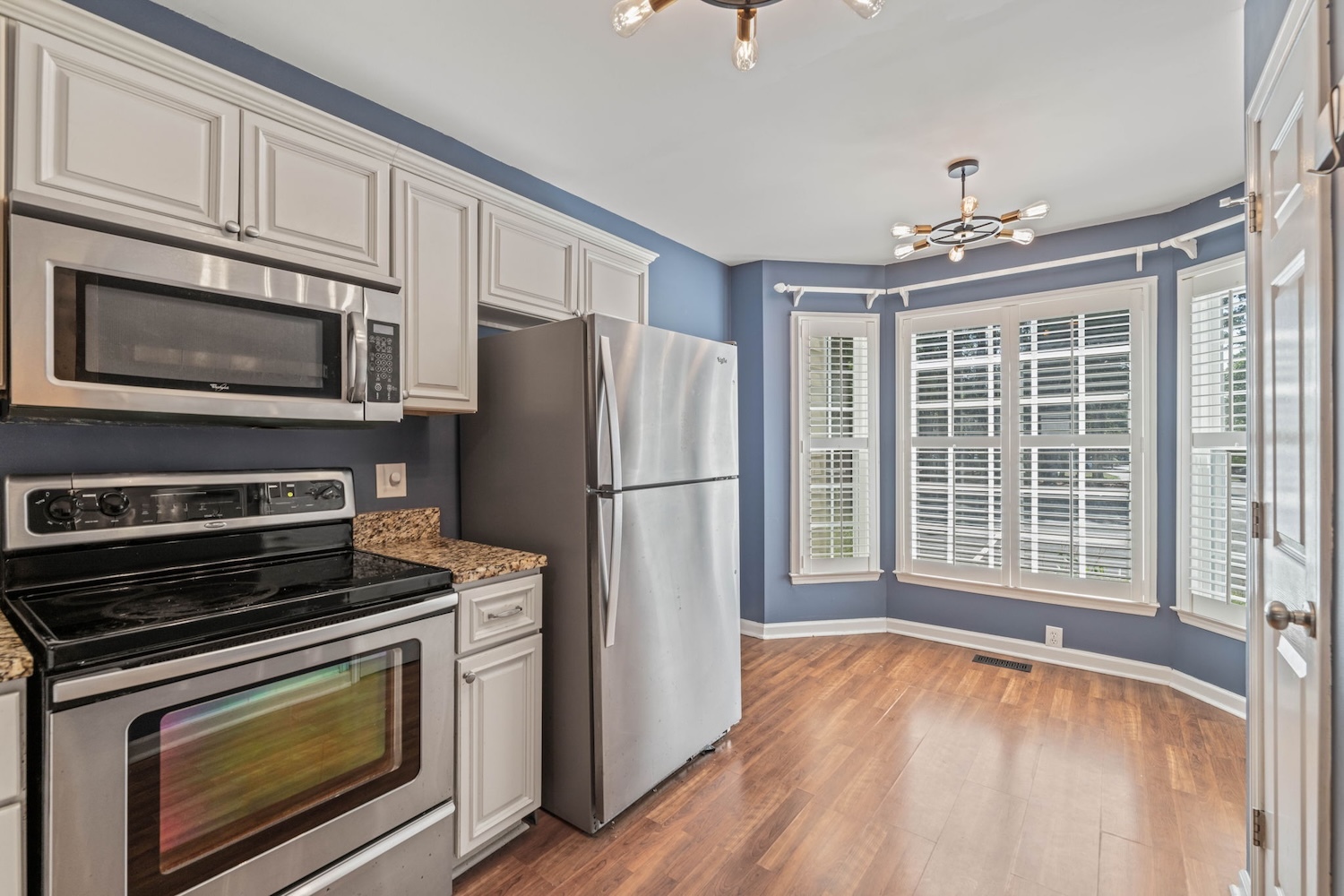 Welcome to 6051 Epping Forest – a stylish 2-bedroom, 2.5-bath townhouse ideally located in a prime Raleigh setting. Thoughtfully designed with functional living areas and a flexible layout, this home features a loft-style primary suite that easily doubles as a home office. Tucked within a quiet, well-kept community, it offers comfort and convenience at every turn. The gourmet kitchen is a standout, showcasing granite countertops, stainless steel appliances, white shaker cabinets, and a classic subway tile backsplash—ideal for both everyday meals and weekend entertaining. Step outside to your private patio, the perfect spot for morning coffee or evening relaxation. The low-maintenance yard even offers space for container gardening. Enjoy access to community amenities including tennis courts and a pool. Recent upgrades include a newer HVAC (2021), new roof (2022), and modern fixtures throughout. Just minutes from shopping, dining, greenways, and with easy access to I-540, RTP, and Downtown Raleigh, this move-in-ready home is perfect for professionals, first-time buyers, or anyone looking to downsize in style.